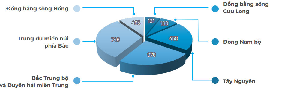 Trong các dự án, kế hoạch được phê duyệt thì vùng Bắc Trung bộ và Duyên hải miền Trung có số liên kết được phê duyệt nhiều nhất, với 978 liên kết; thấp nhất là khu vực đồng bằng sông Hồng với 131 liên kết.