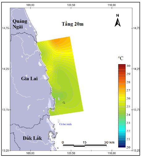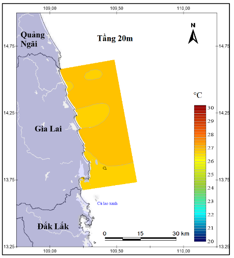 Bảng 1. Thống kê giá trị nhiệt độ nước biển (°C) vùng biển ven bờ Gia Lai
