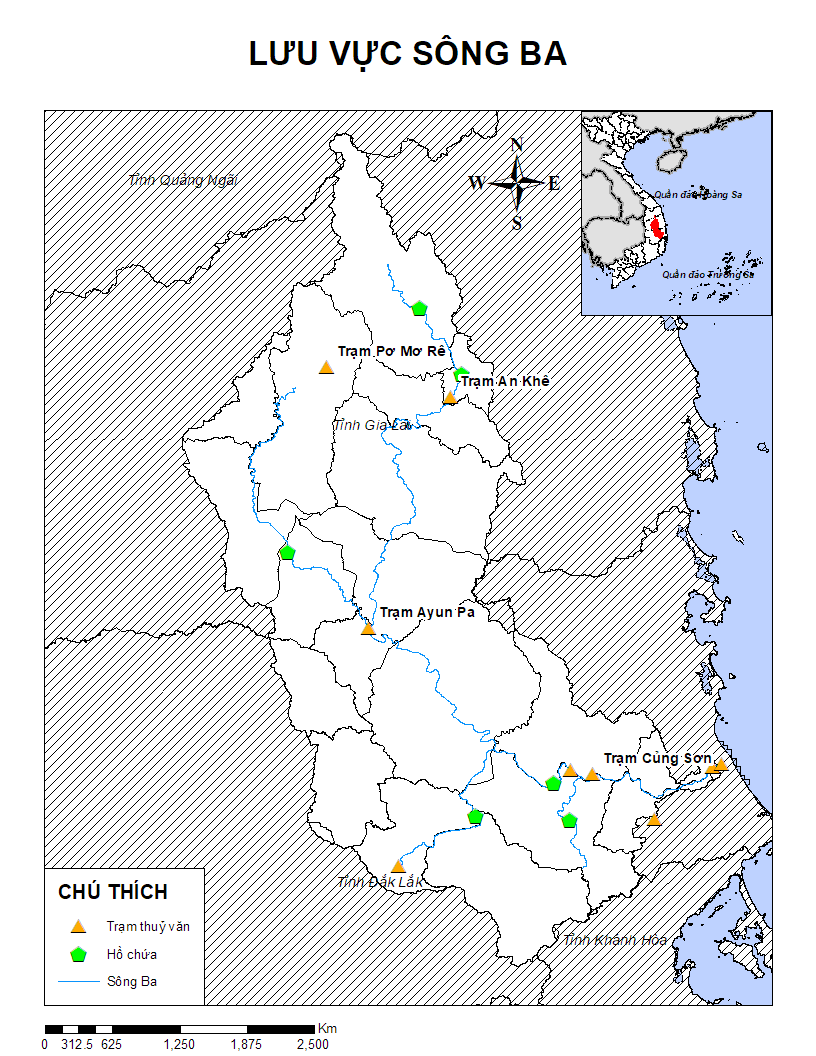 Mặc dù có diện tích khá lớn, lưu vực sông Ba lại nằm trong số những lưu vực ở Việt Nam có mạng lưới trạm đo mưa và mực nước còn thưa thớt. Trên lưu vực hiện có năm hồ chứa lớn gồm An Khê–Ka Nak, Ayun Hạ, Krông H’nang, Sông Hinh và Sông Ba Hạ, đóng vai trò quan trọng trong phát điện, tưới tiêu và điều tiết nguồn nước (Hình 1).