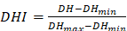 Công thức DHI cuối cùng sẽ là một hàm số của Rating và Weight (Hình 2), cho phép không chỉ xác định một khu vực có đang bị hạn hán hay không mà còn đánh giá được mức độ hiểm họa tiềm tàng của sự kiện đó. Sau khi tính toán được chỉ số thô (DH), một quá trình chuẩn hóa tiếp theo sẽ được thực hiện để đưa giá trị về một thang điểm thống nhất (từ 0 đến 1), giúp việc so sánh giữa các khu vực và các thời điểm khác nhau trở nên dễ dàng và ý nghĩa hơn.