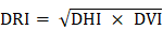 Công thức này đảm bảo rằng một khu vực có mức độ hiểm họa cao nhưng tổn thương thấp (hoặc ngược lại) sẽ có chỉ số rủi ro thấp hơn so với một khu vực có cả hiểm họa và tổn thương đều cao. Việc lấy căn bậc hai được thực hiện nhằm mục đích chuẩn hóa và giảm nhẹ sự chênh lệch quá lớn giữa các chỉ số đầu vào, giúp kết quả DRI phản ánh một cách cân bằng và chính xác hơn rủi ro tiềm tàng. Các giá trị DHI và DVI đều đã được chuẩn hóa về một thang điểm thống nhất (từ 0 đến 1), đảm bảo tính nhất quán của phép tính. Kết quả là chỉ số DRI cũng sẽ nằm trong khoảng từ 0 đến 1, trong đó giá trị càng gần 1 thể hiện rủi ro hạn hán càng cao.