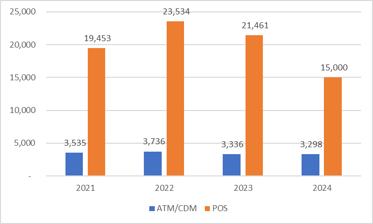 Hình 1. Số lượng ATM, POS, CDM của Agribank giai đoạn 2021-2024