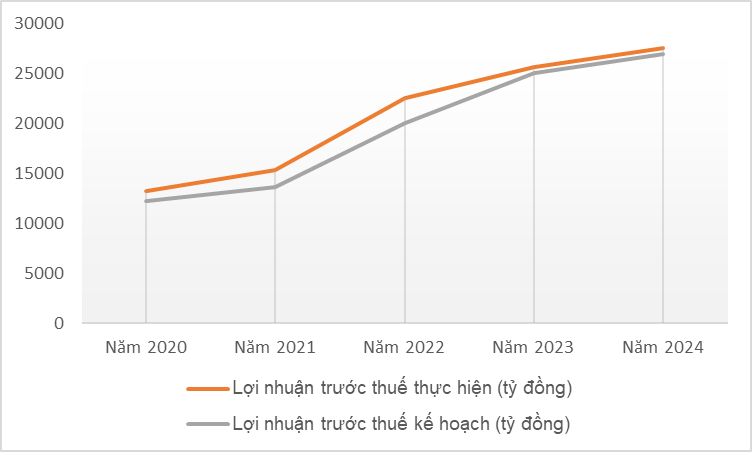 Hình 5. Kết quả thực hiện lợi nhuận trước thuế của Agribank