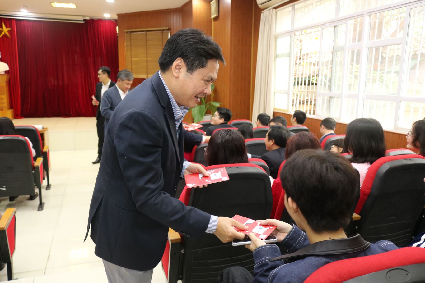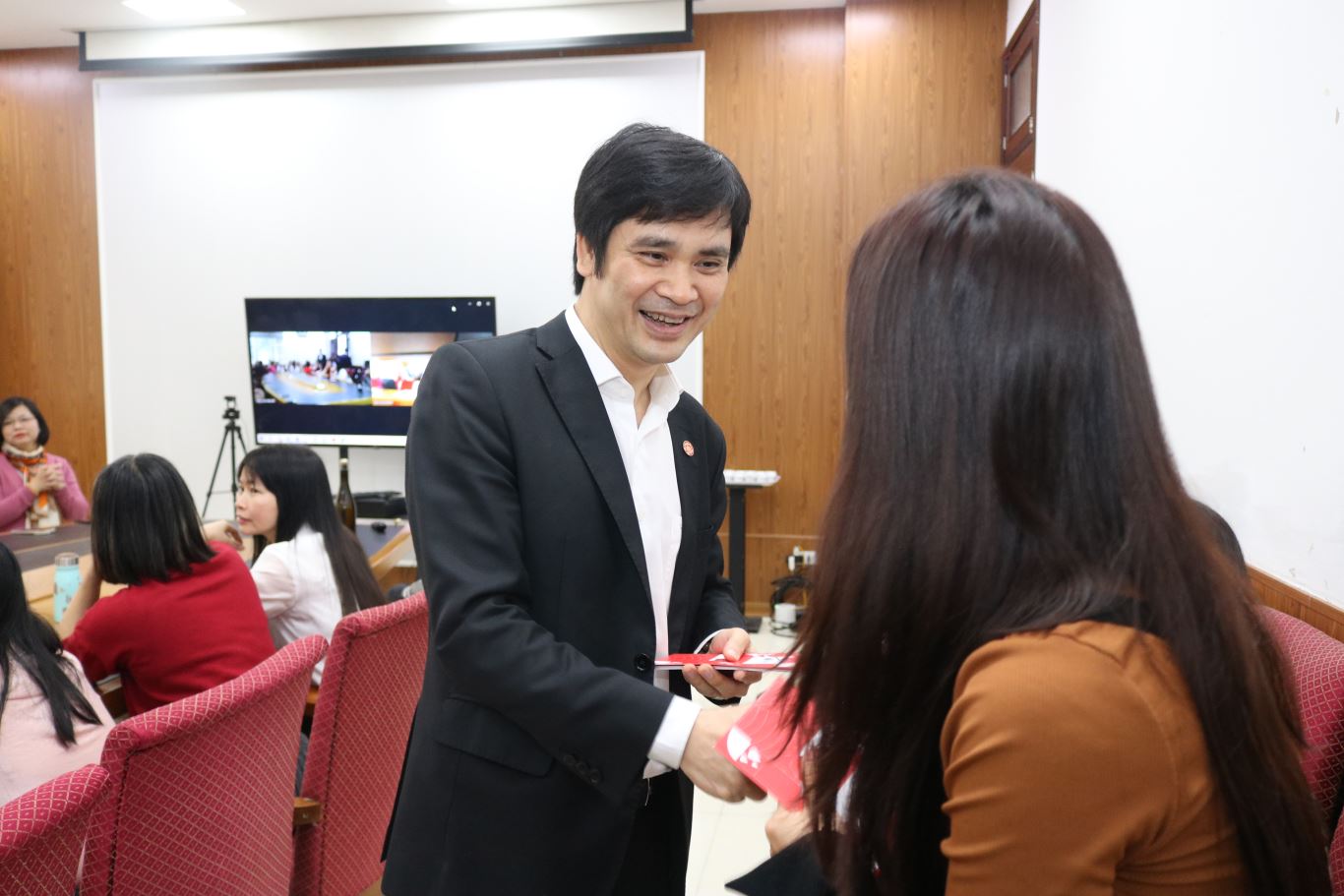 Không khí vui tươi khi Ban Lãnh đạo Viện gửi lời chúc may mắn đầu xuân qua những phong bao lì xì