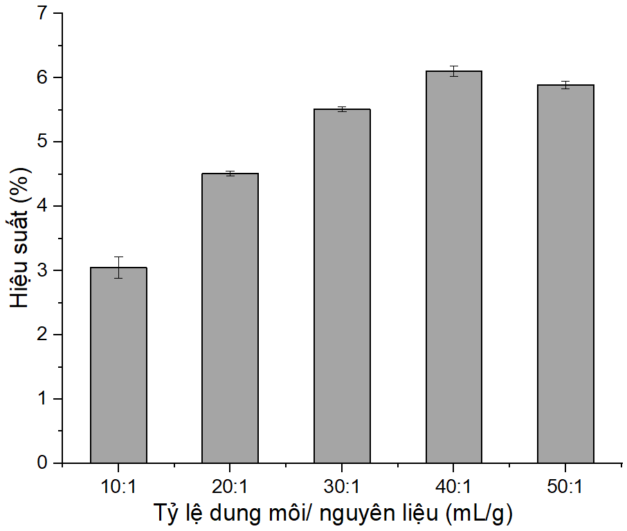 Tỷ lệ dung môi/nguyên liệu: 10:1; 20:1; 30:1; 40:1; 50:1 mL/g.