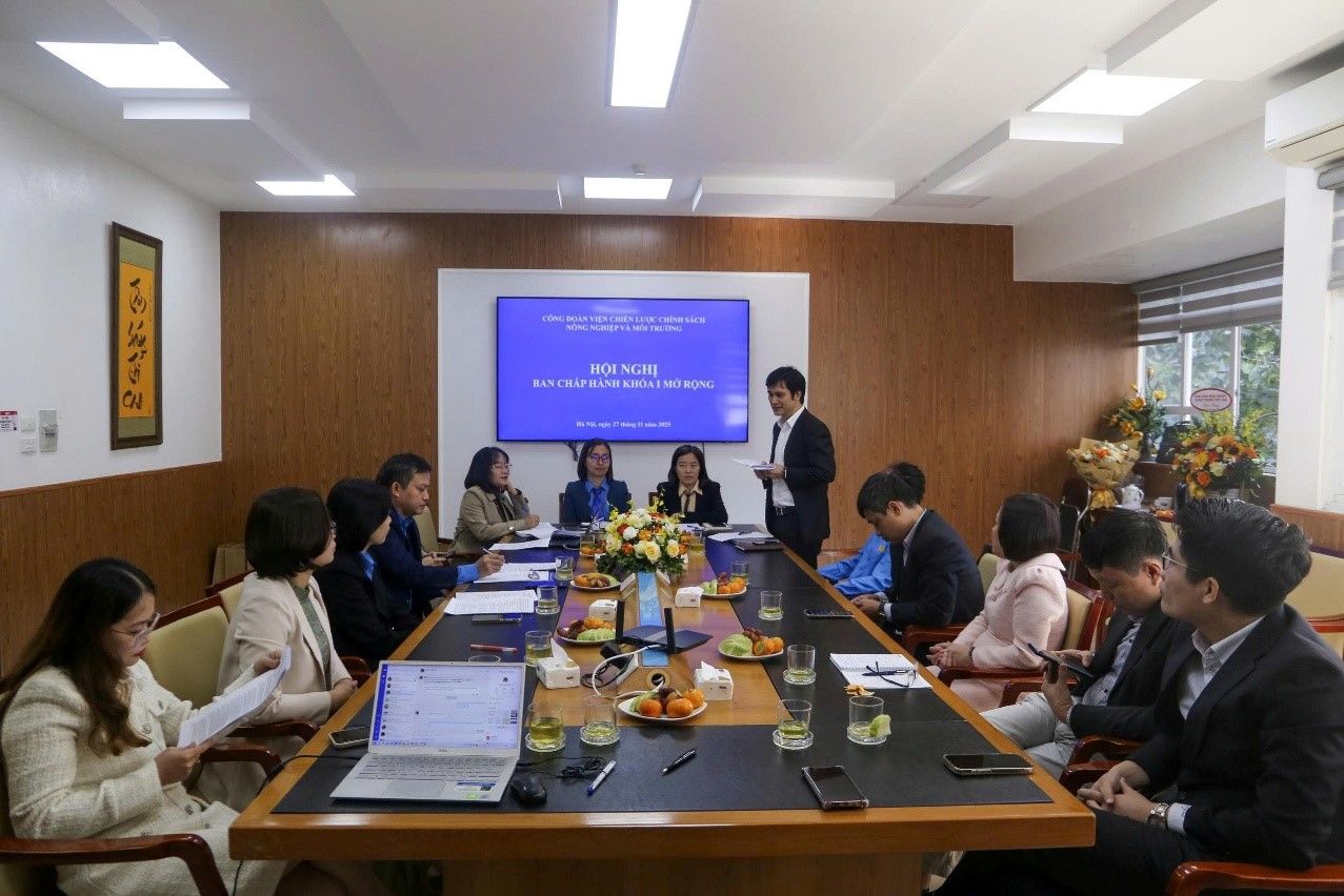Sáng ngày 27/11/2025, Hội nghị Ban chấp hành Công đoàn Viện Chiến lược, Chính sách nông nghiệp và môi trường Khóa I, nhiệm kỳ 2025 – 2030 mở rộng đã diễn ra thành công tốt đẹp. Hội nghị đã thông qua nhiều quyết sách quan trọng, đánh dấu bước ngoặt trong việc hợp nhất tổ chức và đề ra phương hướng hoạt động mới gắn liền với nhiệm vụ chính trị của Viện.