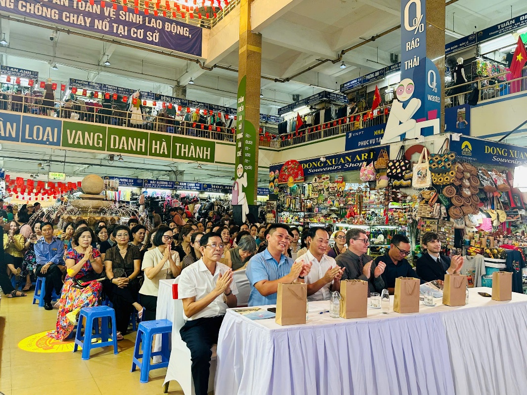 Phát biểu khai mạc Chương trình, ông Ngô Anh Toàn, Trưởng phòng Kinh tế, hạ tầng đô thị phường Hoàn Kiếm chia sẻ, mô hình “Chợ không Rác thải” được thực hiện theo Biên bản ghi nhớ hợp tác (MOU) giữa Chợ Đồng Xuân và PRX Việt Nam, ký kết ngày 16/10/2024, thuộc Dự án Phát triển mô hình Kinh tế tuần hoàn trên địa bàn Hà Nội giai đoạn 2023 - 2024 với sự tham gia tài trợ của Bộ Ngoại giao và Hợp tác châu Âu Cộng hòa Pháp, trong khuôn khổ Chương trình Hành động chung giữa UBND TP. Hà Nội với Hội đồng Vùng Île-de-France. Trong thời gian qua, Chương trình đã đạt nhiều kết quả khả quan, tiểu thương tích cực tham gia phân loại rác tại nguồn; duy trì gian hàng sạch đẹp; không gian chợ gọn gàng, văn minh hơn và quan trọng nhất là ý thức, thói quen của bà con cũng từng bước thay đổi theo hướng tích cực. Đây là thành công lớn mà lãnh đạo phường đánh giá rất cao. Ngày hội “Chợ Đồng Xuân không rác thải” là hoạt động tổng kết Chương trình thí điểm “Chợ không rác thải” năm 2025, nhằm nâng cao hiệu quả quản lý chất thải rắn tại chợ Đồng Xuân, đồng thời khuyến khích ý thức, hành vi giảm thiểu, phân loại rác thải từ chính tiểu thương và khách hàng. Đây cũng là dịp để biểu dương, khen thưởng những gian hàng tiên phong trong việc gìn giữ vệ sinh, áp dụng các giải pháp xanh, hướng tới xây dựng một mô hình chợ văn minh, thân thiện môi trường ngay giữa lòng Thủ đô.