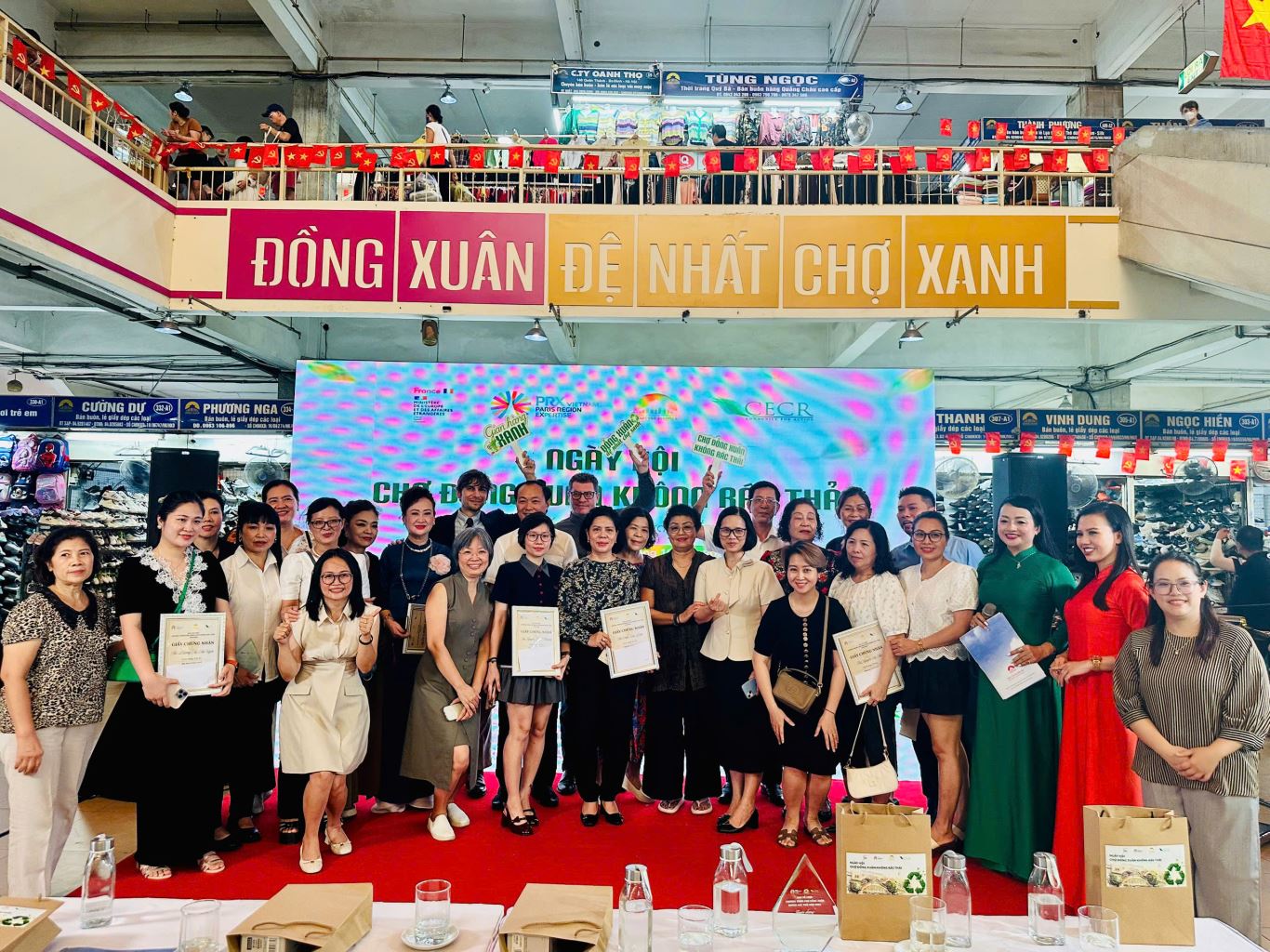 Trong hai ngày 3 - 4/10/2025, tại Khu vực A1, chợ Đồng Xuân, phường Hoàn Kiếm, TP. Hà Nội, Công ty Cổ phần Đồng Xuân phối hợp với Cơ quan hỗ trợ hợp tác quốc tế vùng Paris tại Việt Nam (PRX Việt Nam); Trung tâm Nghiên cứu Môi trường và Cộng đồng (CECR) tổ chức Ngày hội “Chợ Đồng Xuân không rác thải” với chủ đề “Vì một chợ Đồng Xuân Xanh -Sạch - Đẹp - Văn minh”. Tham dự Ngày hội có gần 60 tiểu thương, chi trưởng ngành hàng của chợ Đồng Xuân cùng đại diện Đại sứ quán Pháp tại Việt Nam; UBND Phường Hoàn Kiếm; Tổ chức PRX Việt Nam và cán bộ, nhân viên CECR.