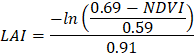 LAI biểu thị diện tích lá trên một đơn vị diện tích đất (m²/m²). LAI được ước tính từ NDVI thông qua quan hệ thực nghiệm (Turner, 1999) [1]: