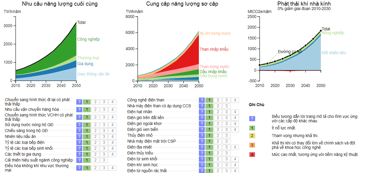Phiên bản webtool (trực tuyến) cho Calculator 2050 của Việt Nam