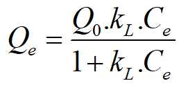 Where Qe is the amount of substance adsorbed per gram of adsorbent at equilibrium (mol/g), Ce is the equilibrium concentration of the solute (mol/L), and Q0 and kL are Langmuir constants, with Q0 representing the maximum monolayer adsorption capacity and kL representing the binding energy or affinity parameter of the adsorption system.