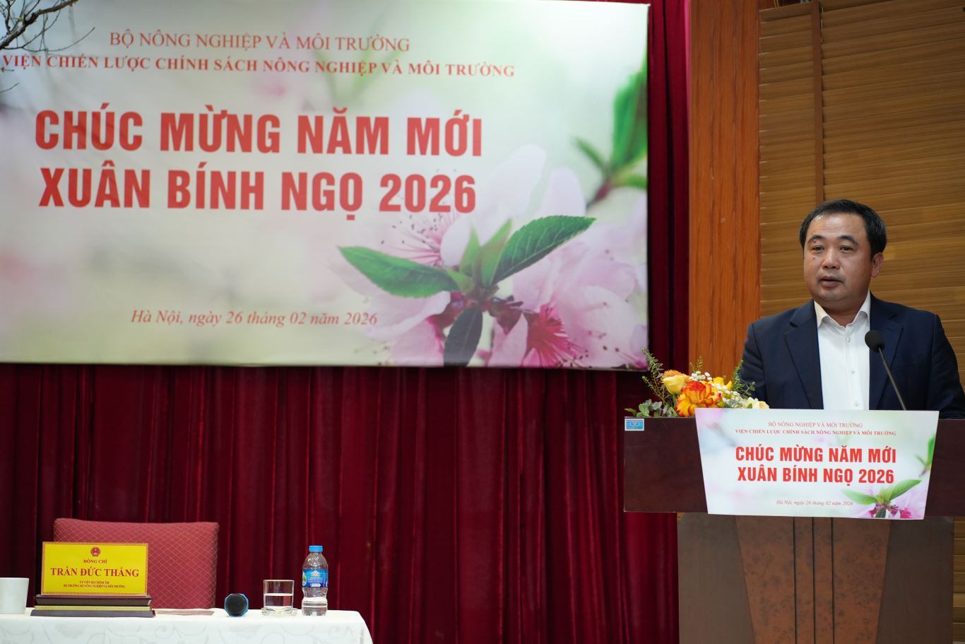 Chiều 26/2/2026, Ủy viên Bộ Chính trị, Bộ trưởng Bộ Nông nghiệp và Môi trường Trần Đức Thắng cùng đại diện lãnh đạo một số đơn vị thuộc Bộ có buổi làm việc với Viện Chiến lược, Chính sách nông nghiệp và môi trường. Tại buổi làm việc, Bộ trưởng nhấn mạnh yêu cầu tăng trưởng hai con số giai đoạn 2026 – 2030 phải gắn với bảo vệ môi trường, khoa học công nghệ và đổi mới sáng tạo, đồng thời đánh giá cao vai trò tham mưu chiến lược của Viện.