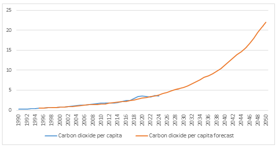 2. Dự báo đến khi nào sẽ có sự đảo chiều của phát thải carbon và KNK trên đầu người trong quá trình tăng trưởng kinh tế và phát triển bền vững?