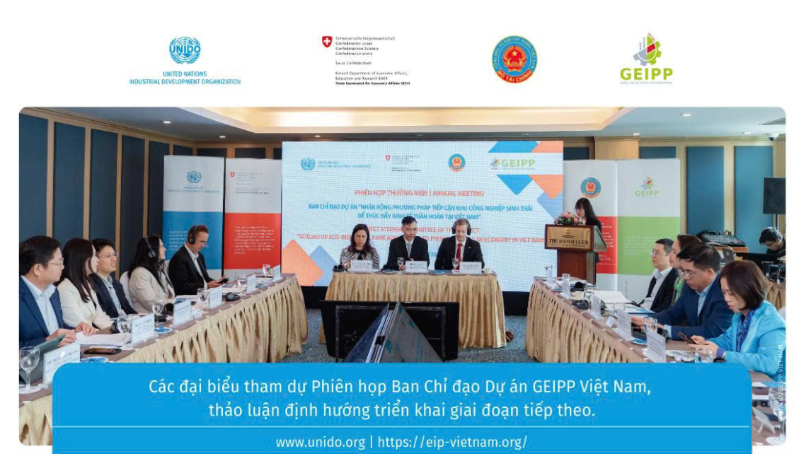 Việt Nam bắt đầu triển khai mô hình KCNST từ năm 2014 thông qua các dự án thí điểm với sự hỗ trợ kỹ thuật của UNIDO và nguồn tài trợ từ các đối tác phát triển quốc tế, dưới sự chủ trì của Bộ Kế hoạch và Đầu tư (nay là Bộ Tài chính) tại một số KCN, gồm KCN Khánh Phú và Gián Khẩu (Ninh Bình), KCN Hòa Khánh (Đà Nẵng), KCN Trà Nóc 1 & 2 (Cần Thơ). Giai đoạn này tập trung vào các nội dung cụ thể như: đánh giá dòng năng lượng, nước và nguyên vật liệu trong KCN; triển khai các giải pháp sản xuất sạch hơn (RECP) tại doanh nghiệp; cải thiện vận hành hệ thống xử lý nước thải tập trung; thí điểm điện mặt trời áp mái; và xác định các cơ hội cộng sinh công nghiệp thông qua tái sử dụng chất thải, phụ phẩm và nước đã qua xử lý giữa các doanh nghiệp. Từ năm 2020 - 2024, thông qua dự án GEIPP I do UNIDO triển khai với sự tài trợ của SECO, mô hình KCNST được mở rộng tại KCN Đình Vũ (Hải Phòng), Hòa Khánh (Đà Nẵng), Trà Nóc 1 & 2 (Cần Thơ), Amata (Đồng Nai) và Hiệp Phước (TP. Hồ Chí Minh). Đến giữa năm 2024, dự án đã đề xuất gần 900 giải pháp RECP, trong đó khoảng 50% được triển khai, xác định hơn 60 cơ hội cộng sinh công nghiệp và nâng cao năng lực cho hơn 2.300 cán bộ quản lý KCN và doanh nghiệp. Các kết quả này cho thấy khả năng giảm tiêu thụ năng lượng, nước, nguyên liệu đầu vào, đồng thời giảm chi phí vận hành và phát thải tại cấp doanh nghiệp và KCN. Giai đoạn 2024 - 2028, Dự án GEIPP giai đoạn II (GEIPP II) tiếp tục được UNIDO hỗ trợ kỹ thuật và triển khai, với sự tài trợ của Chính phủ Thụy Sĩ thông qua SECO và sự chỉ đạo của Bộ Tài chính. Bên cạnh việc duy trì hỗ trợ các KCN đã tham gia GEIPP I, dự án mở rộng phạm vi hỗ trợ sang các KCN mới, bao gồm VSIP Bắc Ninh, Tân Đô (Tây Ninh) và Nam Cầu Kiền (Hải Phòng). Trọng tâm của GEIPP II là thúc đẩy nhân rộng các phương pháp tiếp cận KCNST, tiếp tục hoàn thiện khung chính sách liên quan, đồng thời tăng cường năng lực cho các KCN và doanh nghiệp trên phạm vi toàn quốc.