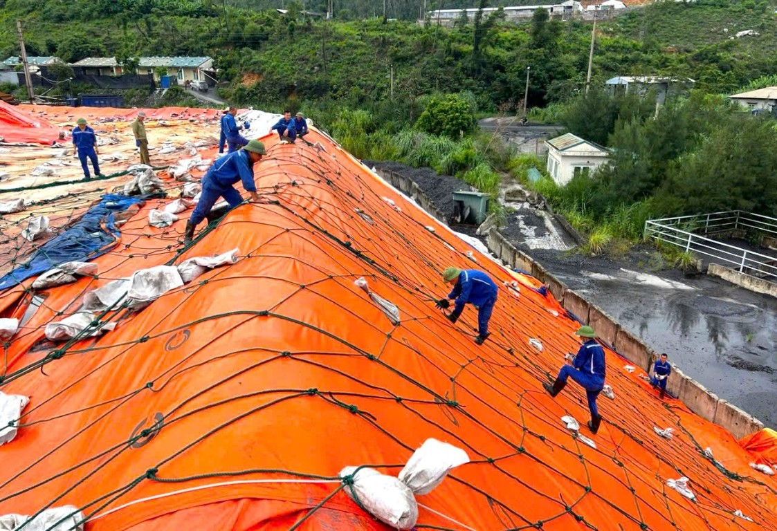 Công tác che phủ bạt các kho than để phòng chống mưa bão