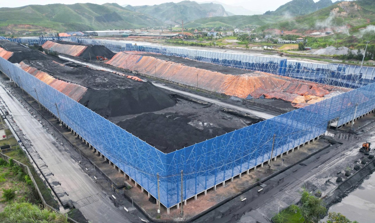 Hệ thống lưới chắn bụi Cụm bến số 3 được bao quanh các kho than rộng hơn 65.000 m², cao 14 m