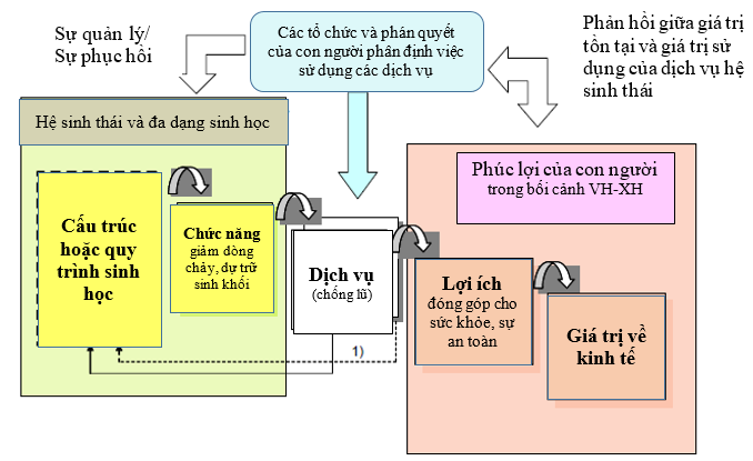 Hình 3. Con đường từ cấu trúc và quy trình của hệ sinh thái đến phúc lợi con người (Nguồn: De Groot và cộng sự, 2010)