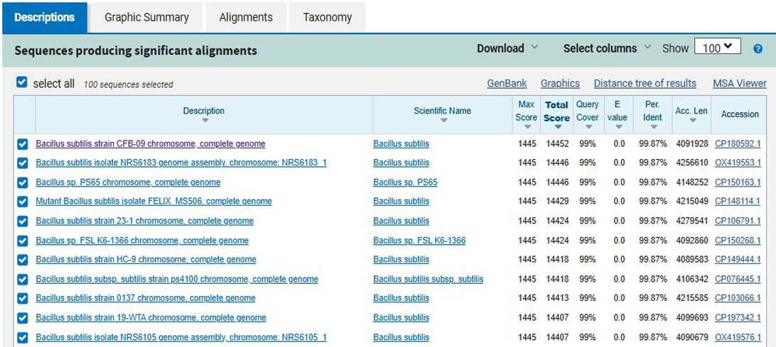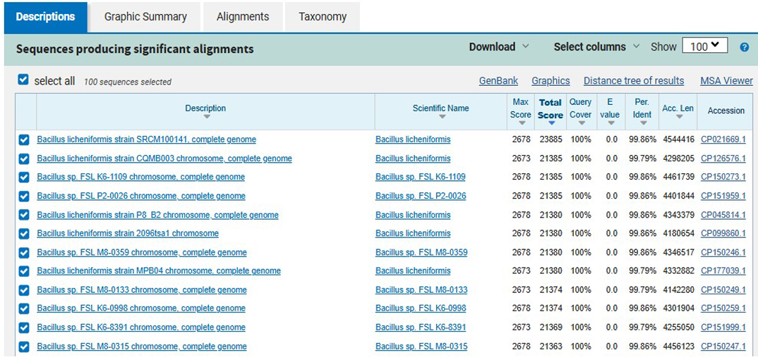 Figure 2. BLAST alignment results of the 16S rRNA gene sequence of isolate M8