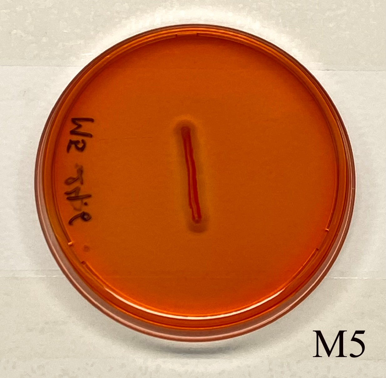 All ten isolates were identified as bacterial colonies and were designated M1 to M10 for subsequent analyses. These isolates demonstrated stable growth under the selective pressure of high dye concentration in MSM medium, which reflects their natural adaptation to the dye-rich environment of textile wastewater. The list of isolates obtained is presented in Table 1.