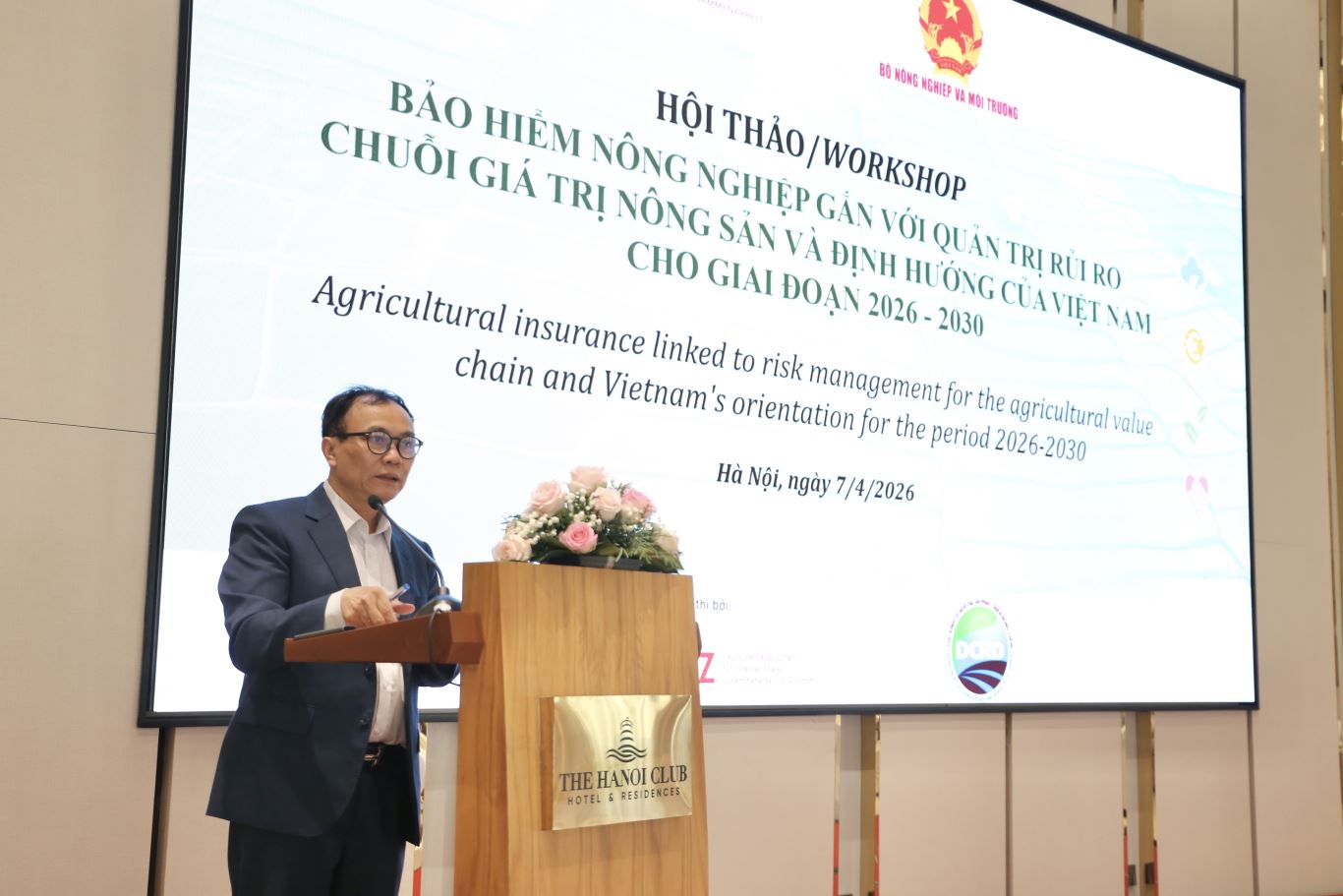 Ngày 7/4/2026, tại Hà Nội, Cục Cục Kinh tế hợp tác và Phát triển nông thôn phối hợp với Tổ chức GIZ tổ chức Hội thảo với chủ đề “Bảo hiểm nông nghiệp gắn với quản trị rủi ro chuỗi giá trị nông sản và định hướng của Việt Nam giai đoạn 2026–2030” nhằm chia sẻ kinh nghiệm quốc tế, đánh giá thực trạng triển khai bảo hiểm nông nghiệp tại Việt Nam, đồng thời tham vấn ý kiến của các cơ quan quản lý, địa phương, doanh nghiệp và chuyên gia để phục vụ việc hoàn thiện chính sách trong giai đoạn tới.