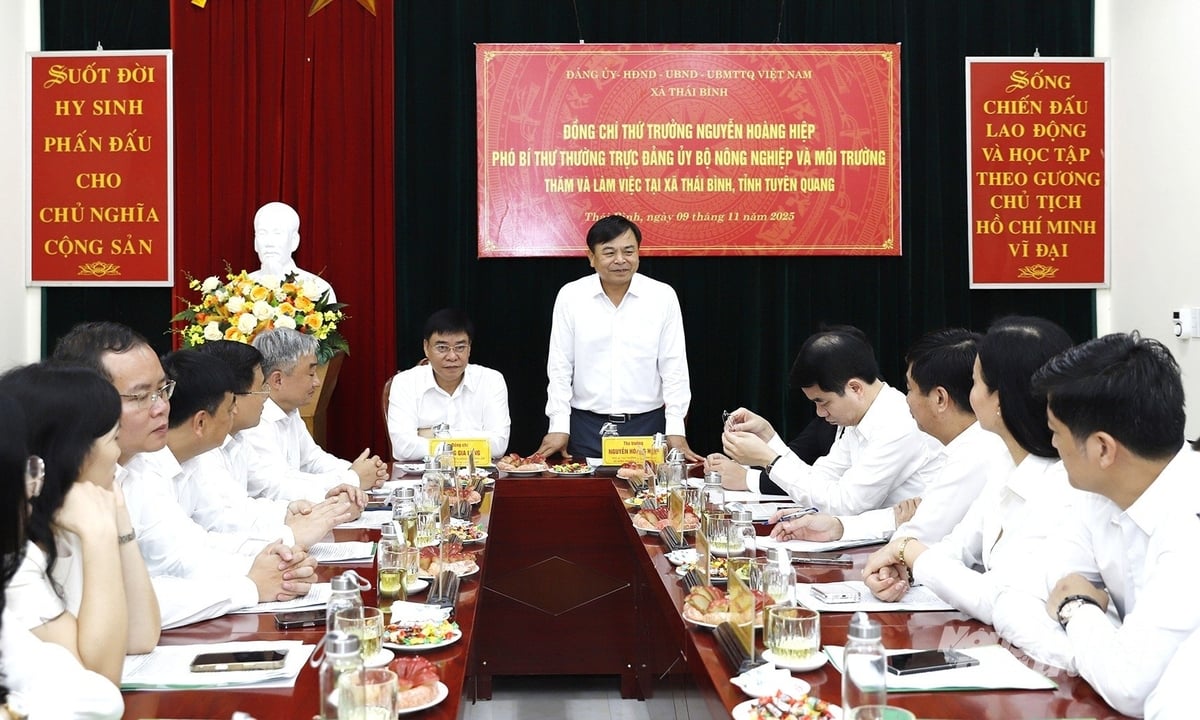 Đoàn công tác của Bộ Nông nghiệp và Môi trường và lãnh đạo tỉnh Tuyên Quang làm việc tại xã Thái Bình (Ảnh: Khương Trung)