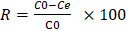 Hiệu suất loại bỏ TC và dung lượng hấp phụ được xác định theo công thức: