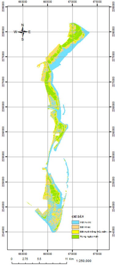 Hình 2. Bản đồ hiện trạng rừng ngập mặn khu vực ven biển tỉnh Thái Bình (cũ) [11]