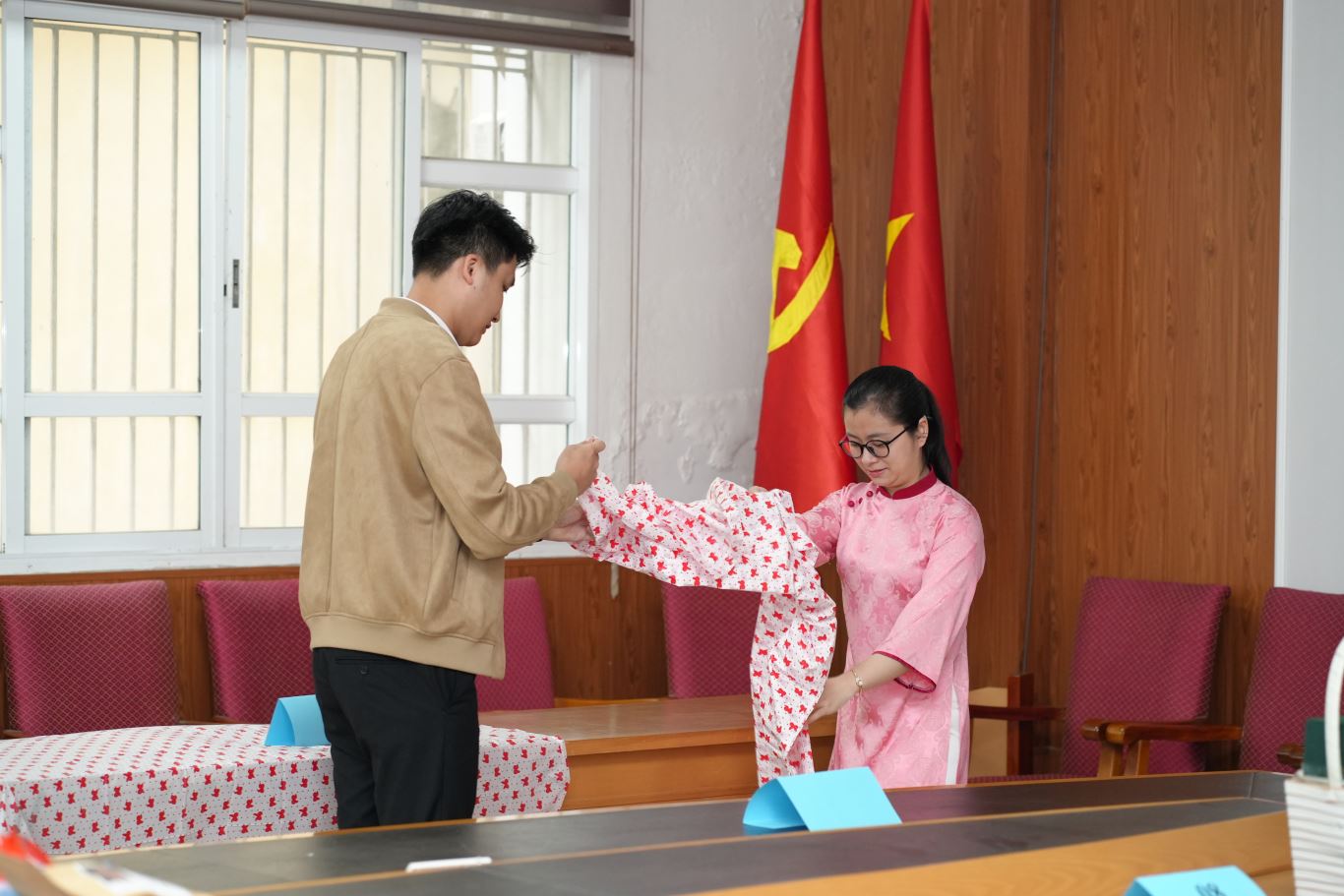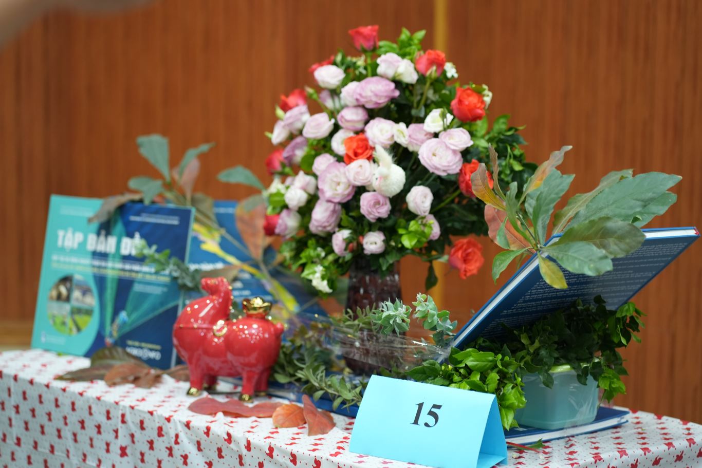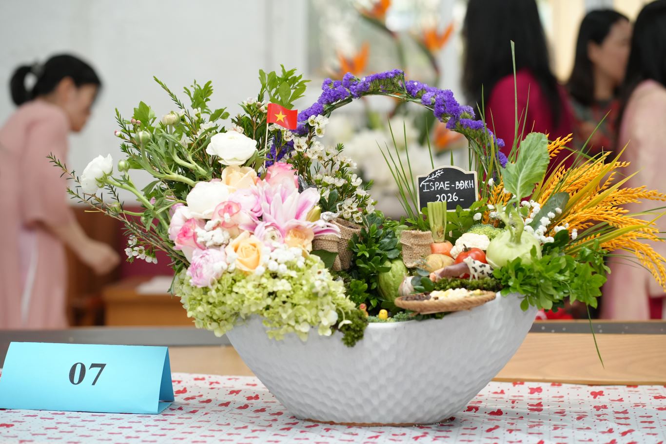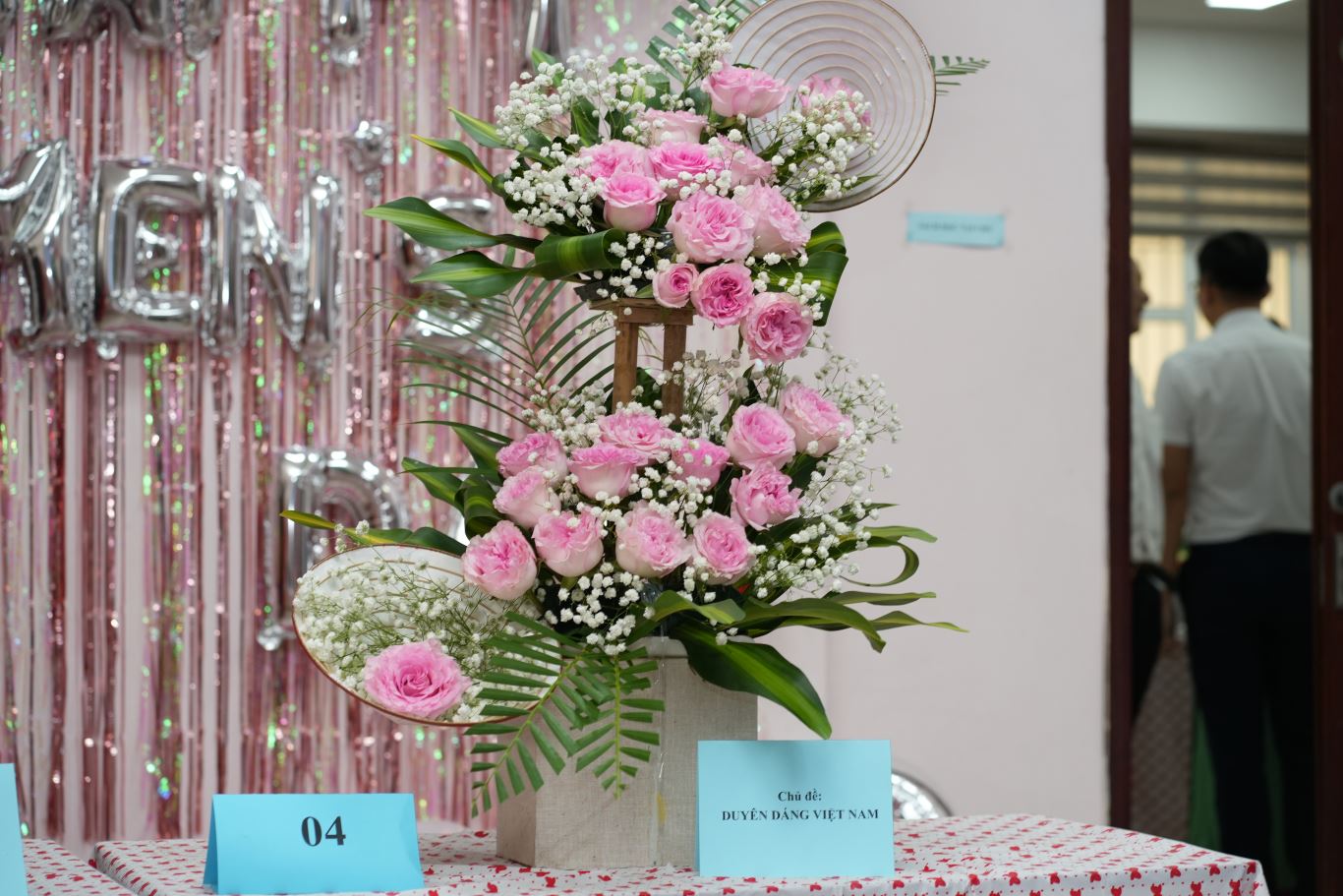 Tác phẩm dự thi của đội thi số 4 tại Hội thi cắm hoa nghệ thuật. Đại diện Phòng Kế hoạch – Tài chính, chị Nguyễn Thị Minh Tâm thuyết trình về tác phẩm “Duyên dáng Việt Nam”. Tác phẩm sử dụng hai biểu tượng quen thuộc là hoa hồng và nón lá, tôn vinh vẻ đẹp dịu dàng, mộc mạc nhưng năng động của người phụ nữ Việt Nam, gắn với dáng hình chữ S của đất nước.