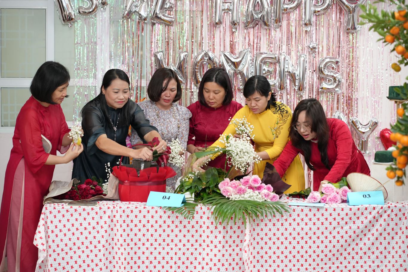 Không khí Hội thi diễn ra sôi nổi với nhiều tác phẩm cắm hoa được chuẩn bị công phu, mang màu sắc và ý tưởng độc đáo. Mỗi lẵng hoa không chỉ thể hiện sự khéo léo, tinh tế của các đội thi mà còn gửi gắm những thông điệp ý nghĩa về sự trân trọng và lời chúc tốt đẹp dành cho phụ nữ nhân Ngày Quốc tế Phụ nữ 8/3.