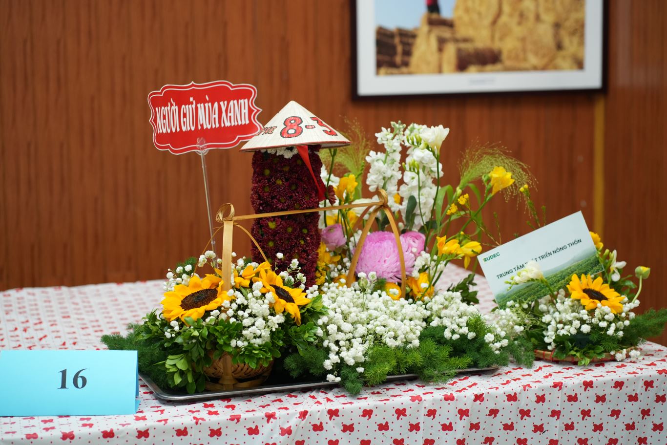 Tác phẩm dự thi của đội thi số 16 tại Hội thi cắm hoa nghệ thuật. Tác phẩm “Người giữ mùa xanh” của Trung tâm Phát triển nông thôn lấy cảm hứng từ hình ảnh người phụ nữ Việt Nam gắn bó với nông nghiệp, âm thầm chăm sóc đất đai và gìn giữ môi trường sống. Hình tượng chiếc nón lá và quang gánh biểu trưng cho sự cần cù, bền bỉ và tình yêu đối với đất đai, thiên nhiên. Qua đó, tác phẩm tôn vinh vai trò của phụ nữ trong hành trình xây dựng nền nông nghiệp xanh và bền vững.