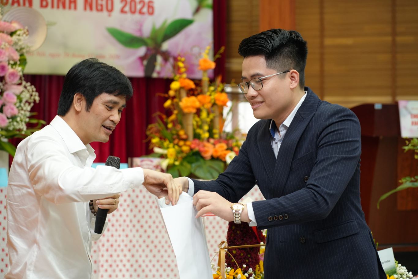 Viện trưởng Trần Công Thắng trao giải Đặc biệt cho đội thi xuất sắc tại Hội thi cắm hoa nghệ thuật.
