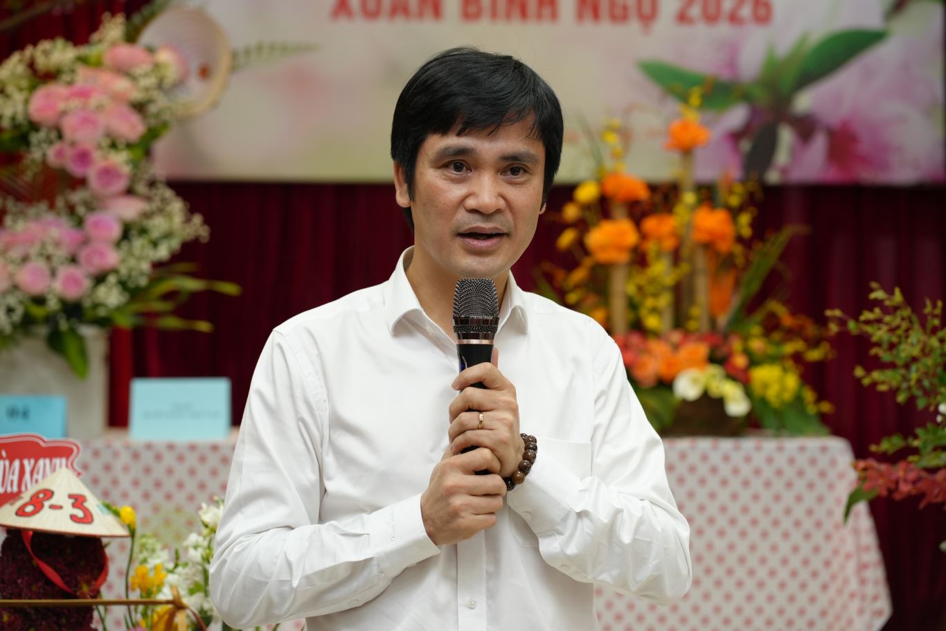 Viện trưởng Trần Công Thắng phát biểu tại Hội thi cắm hoa nghệ thuật chào mừng Ngày Quốc tế Phụ nữ 8/3